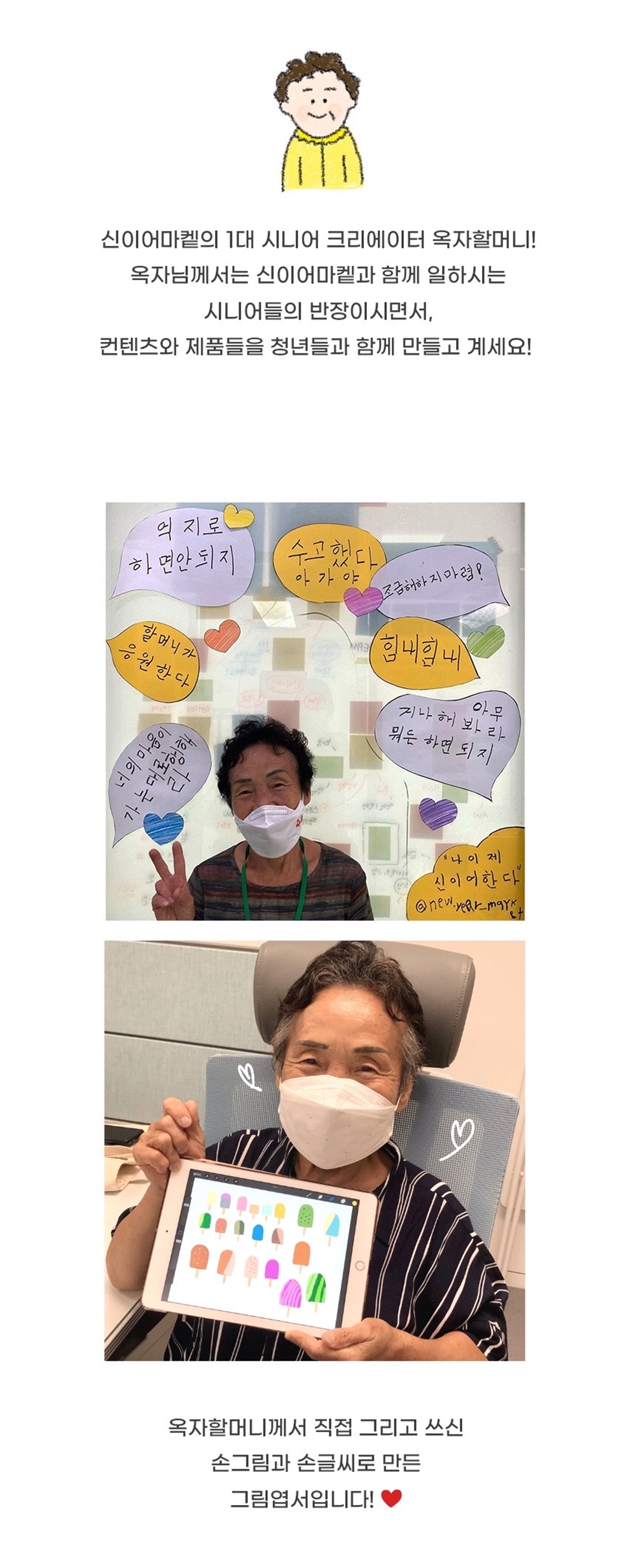 옥자할머니께서 아이스께끼 하나하나 그리시며