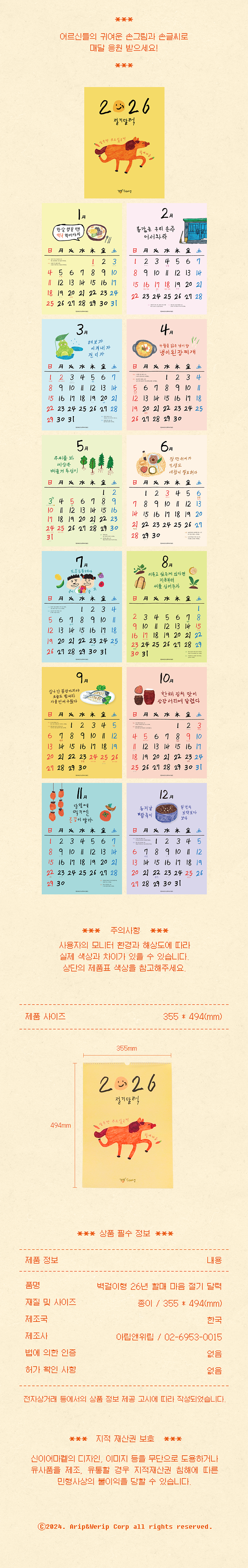 26년을 맞아 업그레이드 된 신이어마켙 대표 제품 '절기 달력'
