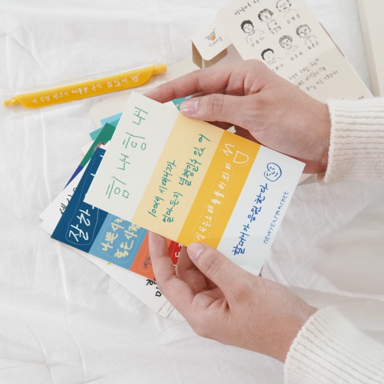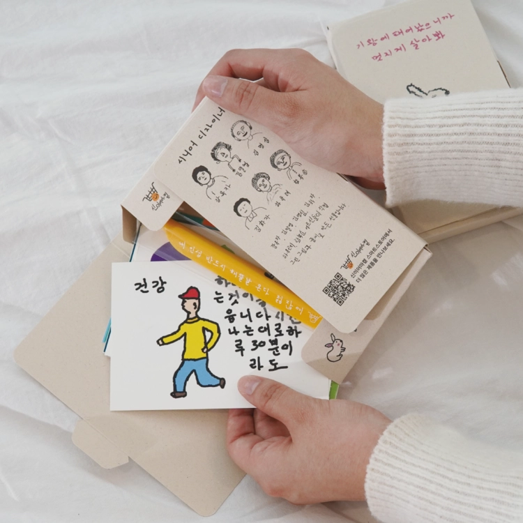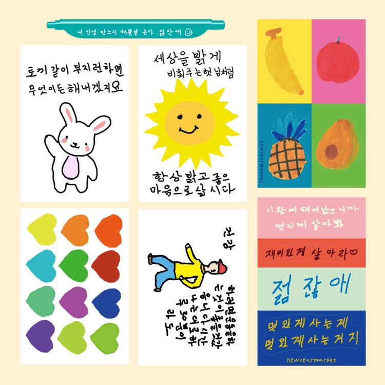 응원팩에는 스티커, 엽서, 클립펜이 들어있어요.